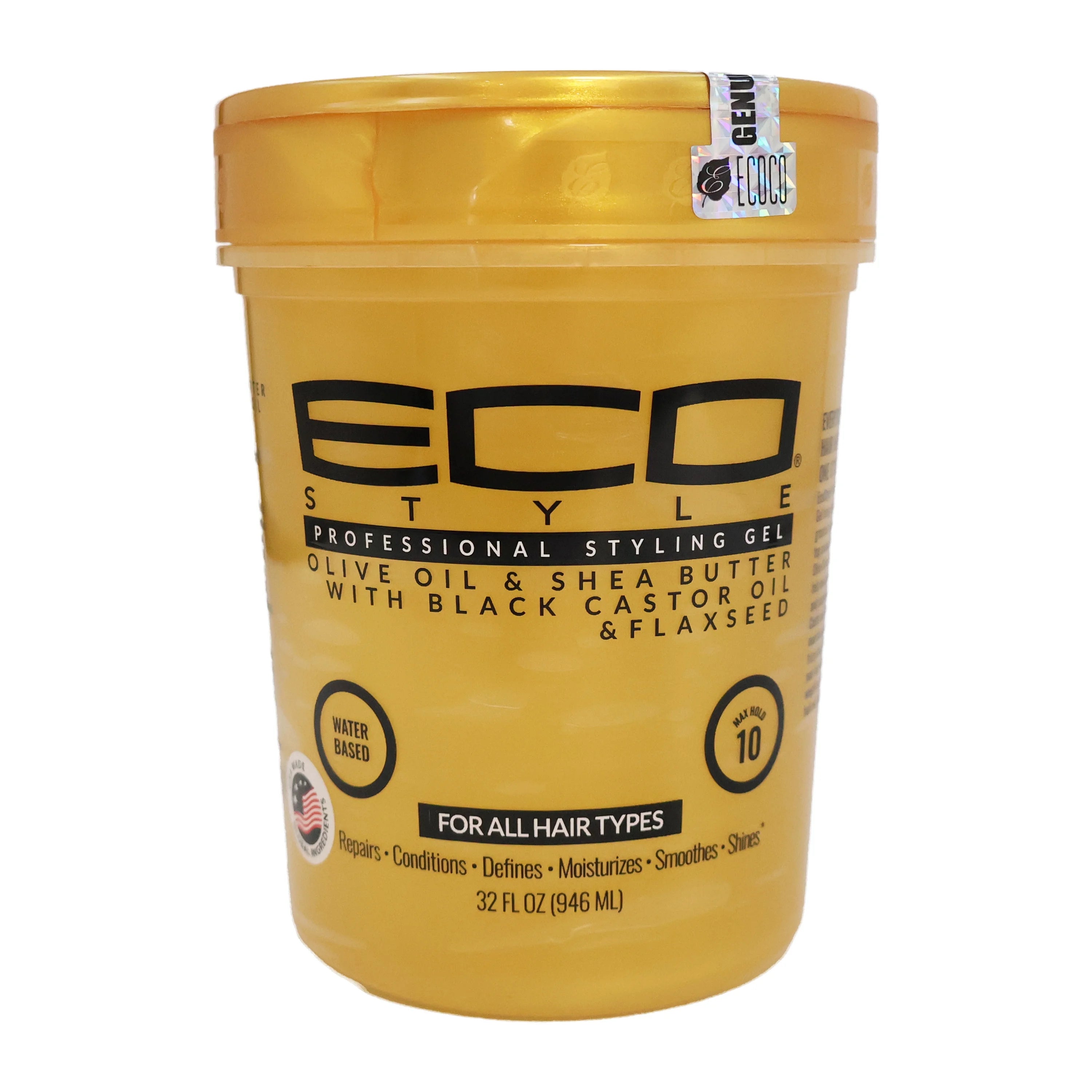 The gold standard of hair gels is here. This product contains everything you need all in one styling gel. Eco Style Gold Gel brings together the greatest elements of our top products. 100% pure olive oil moisturizes, shea butter protects and   repairs while black castor & flaxseed oil promote total hair and scalp health.