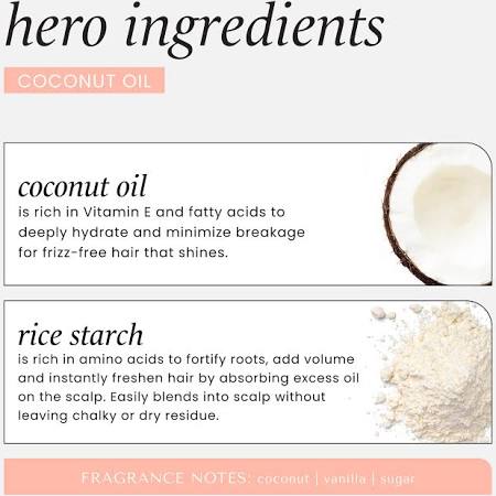 Removing excess oil is now easier than lather, rinse and repeat. Skip a wash or extend the life of your style with this lightweight, coconut infused formula that will leave your second day hair even fresher than the first. Ultra-fine rice starch acts quickly to soak up oil, sweat and odor leaving hair bouncy, vibrant and clean. The tropical escape your hair has been waiting for!